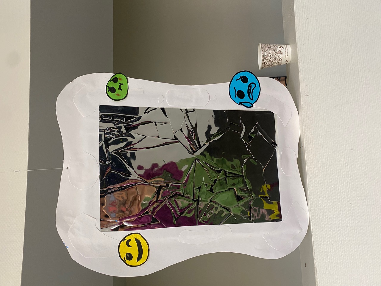 - la multiplicité des identités en détournant les portraits standardisés de la photo d’identité, ou en déformant le reflet de miroirs,