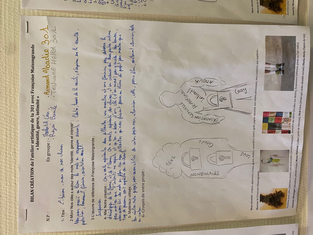 Projet "Identité, genre, intimité" avec Françoise Maisongrande au collège Pierre de Fermat.