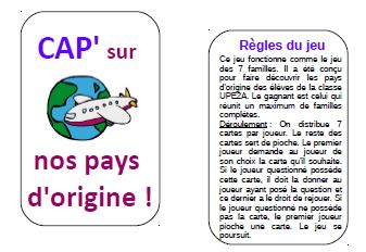 Les EANA du collège Raymond Badiou à Toulouse ont réalisé avec leur professeure Laura Bonzom un jeu des 7 familles qui permet de découvrir 7 pays : le Sri Lanka, le Mali, la Somalie,la Bulgarie, l'Italie, l'Irak, la Syrie . A découvrir, à partager et à jouer !