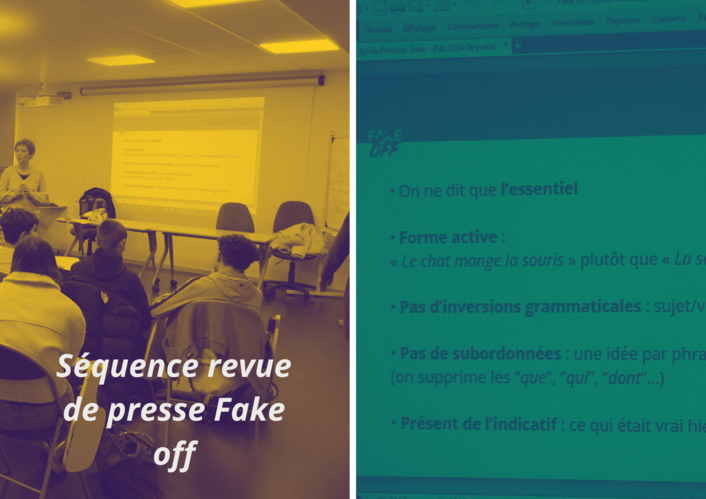 Objectif : Travailler la construction de la revue de presse en partenariat avec FAKE OFF une association de journalistes issus de tous médias engagée dans le développement de l’esprit critique et contre la désinformation.