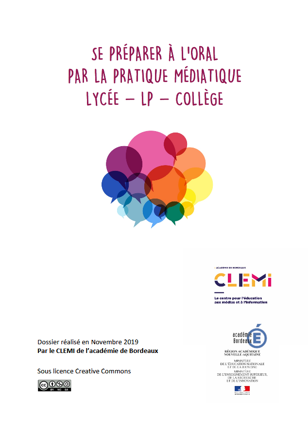Le site des enseignants documentalistes de l'académie de Toulouse propose une synthèse des ressources mises à disposition par le Clemi de Bordeaux intitulé "Se préparer à l'oral par la pratique médiatique".