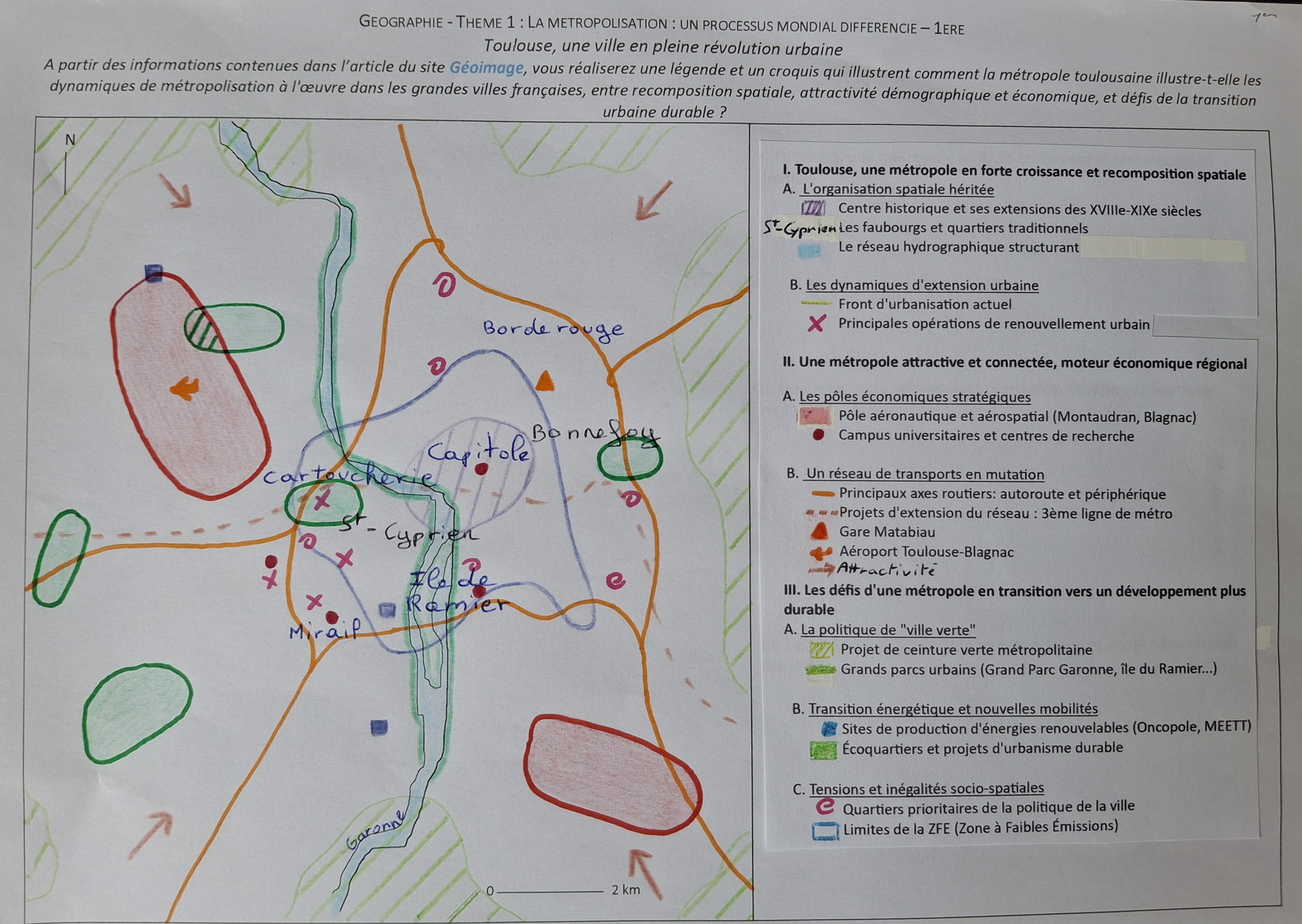 À travers l'exercice de transposition d'une image satellite en croquis, les élèves découvrent la structure urbaine, les dynamiques d'aménagement et les enjeux métropolitains de la "ville rose".