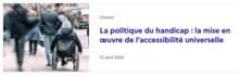 - Un dossier thématique sur la mise en place de la loi sur l'accès universel, toujours sur "Vie publique" (dernière mise à jour le 15 avril 2024)