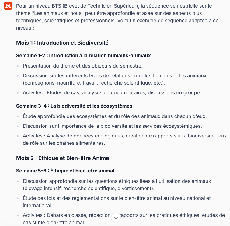 Face à la complexité de ce sujet et aux opportunités offertes par les outils d'IA pourquoi ne pas tester Mistral, outil d'IA générative développé par une entreprise française et mis en avant par le ministère ?