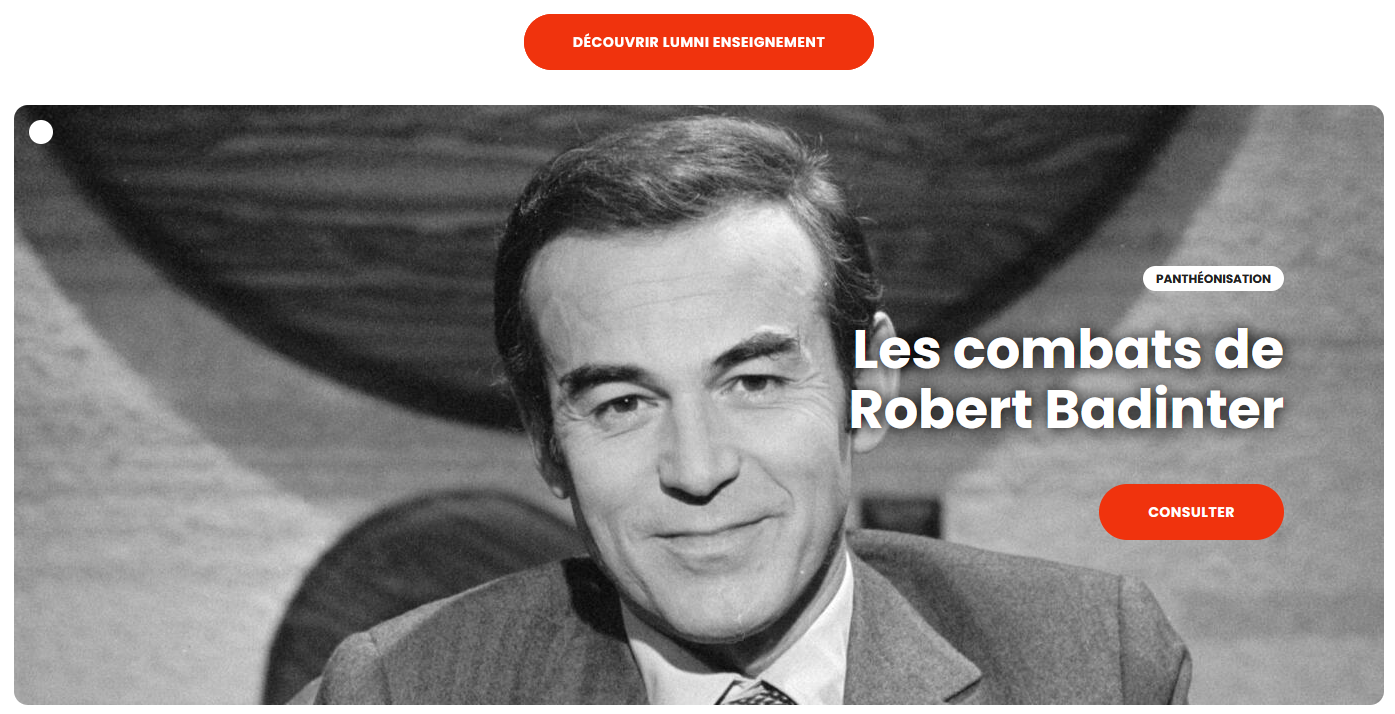 - Enfin, et pour terminer ce tour d'horizon non exhaustif des ressources disponibles, signalons le site du Panthéon qui publie des articles thématiques et annonce une exposition temporaire sur la personne et les engagements de Robert Badinter.