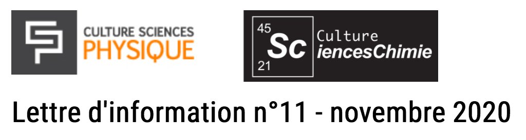 La lettre d'information n°11 - novembre 2020 est parue, elle est consultable en ligne. La nouvelle version du site CultureSciencesChimie vient de sortir. Vous y trouverez des nouvelles ressources de tout type (article, conférence, vidéo) avec...