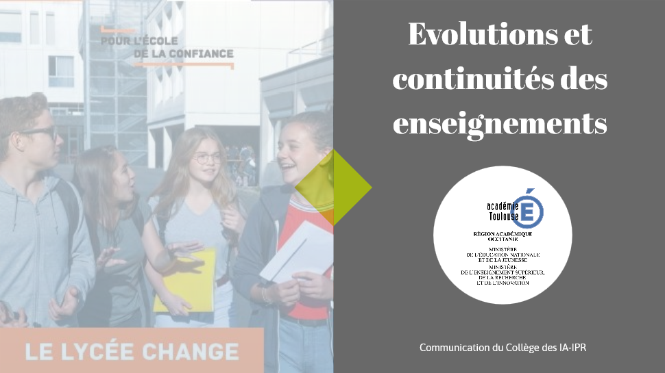 Le collège des IA IPR de l'académie de Toulouse propose un document synthétique d’accompagnement à l’attention des chefs d’établissements et des professeurs