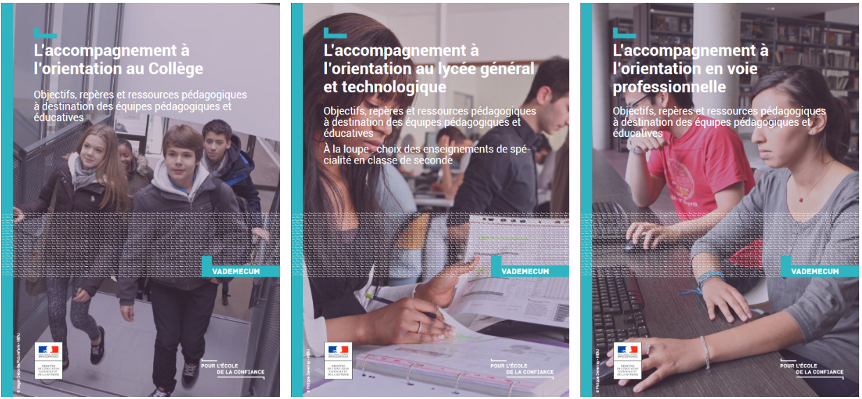 Ces vademecum publiés par le ministère précisent les axes pédagogiques de l'accompagnement à l'orientation selon les niveaux d'enseignement.