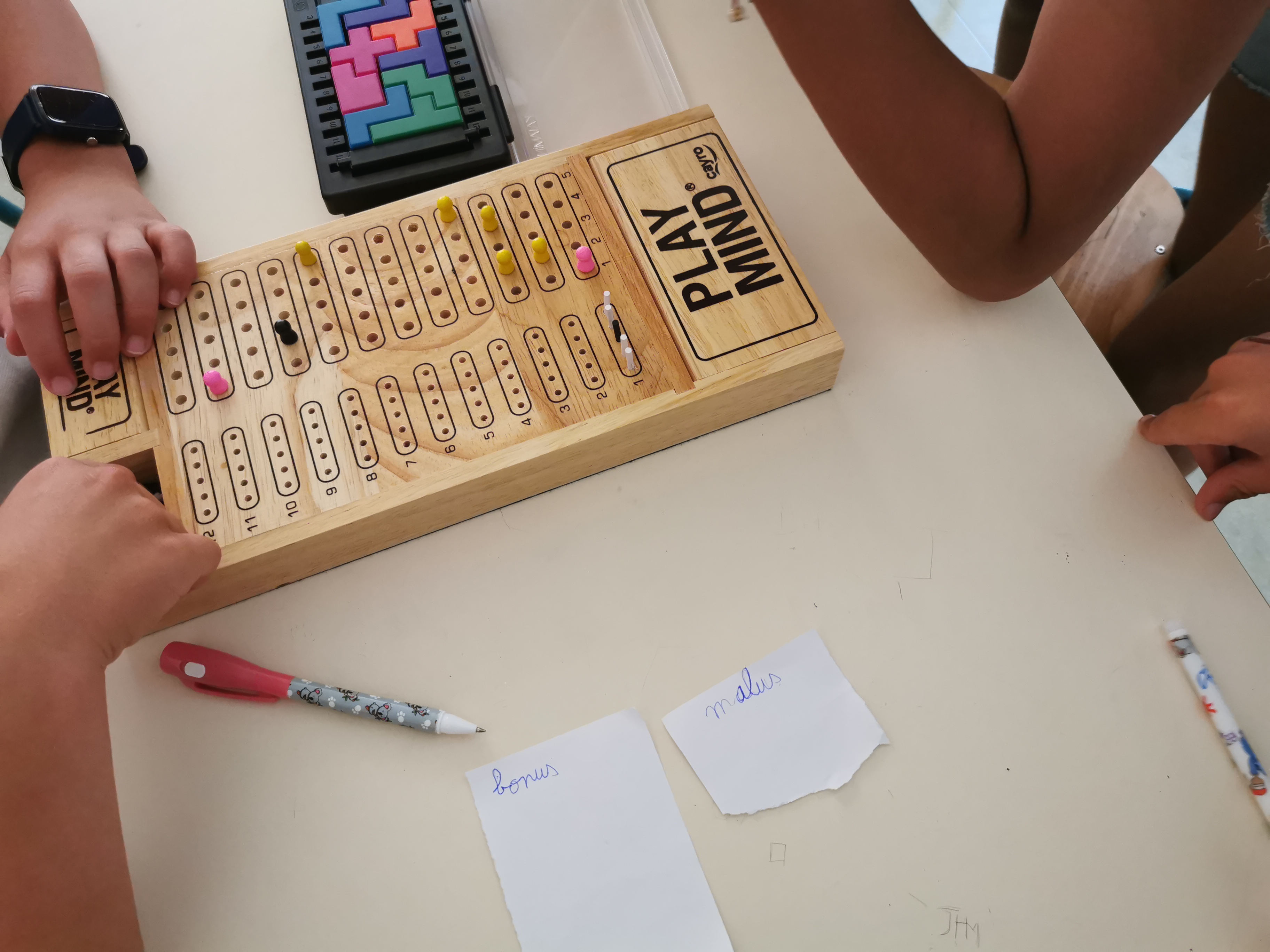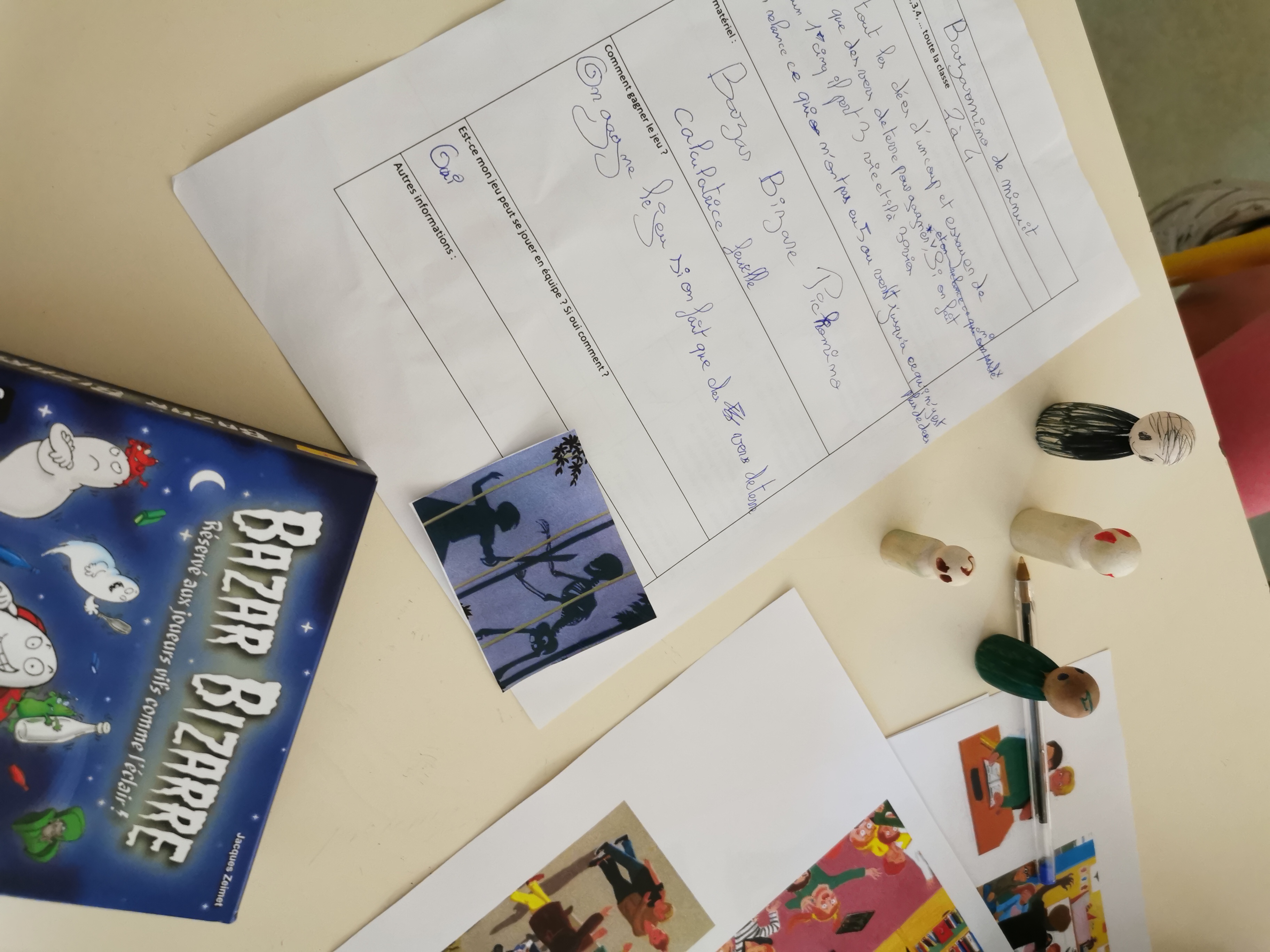 Dans un second temps, la classe a expérimenté les malettes Mathémakits, avec l’envie d’aller plus loin : créer leurs propres jeux mathématiques : projet de l'école. À partir des éléments des malles Mathémakits, les élèves ont imaginé leurs propres jeux mathématiques, en y intégrant des références explicites à l’univers du Royaume de Minuit. Ils se sont parfois identifiés aux personnages, devenant le temps d’un jeu Massimo ou Achille.