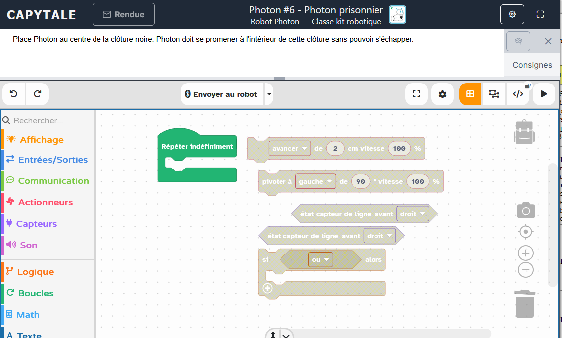 La programmation se fait sur une interface de type Scratch, en ligne.