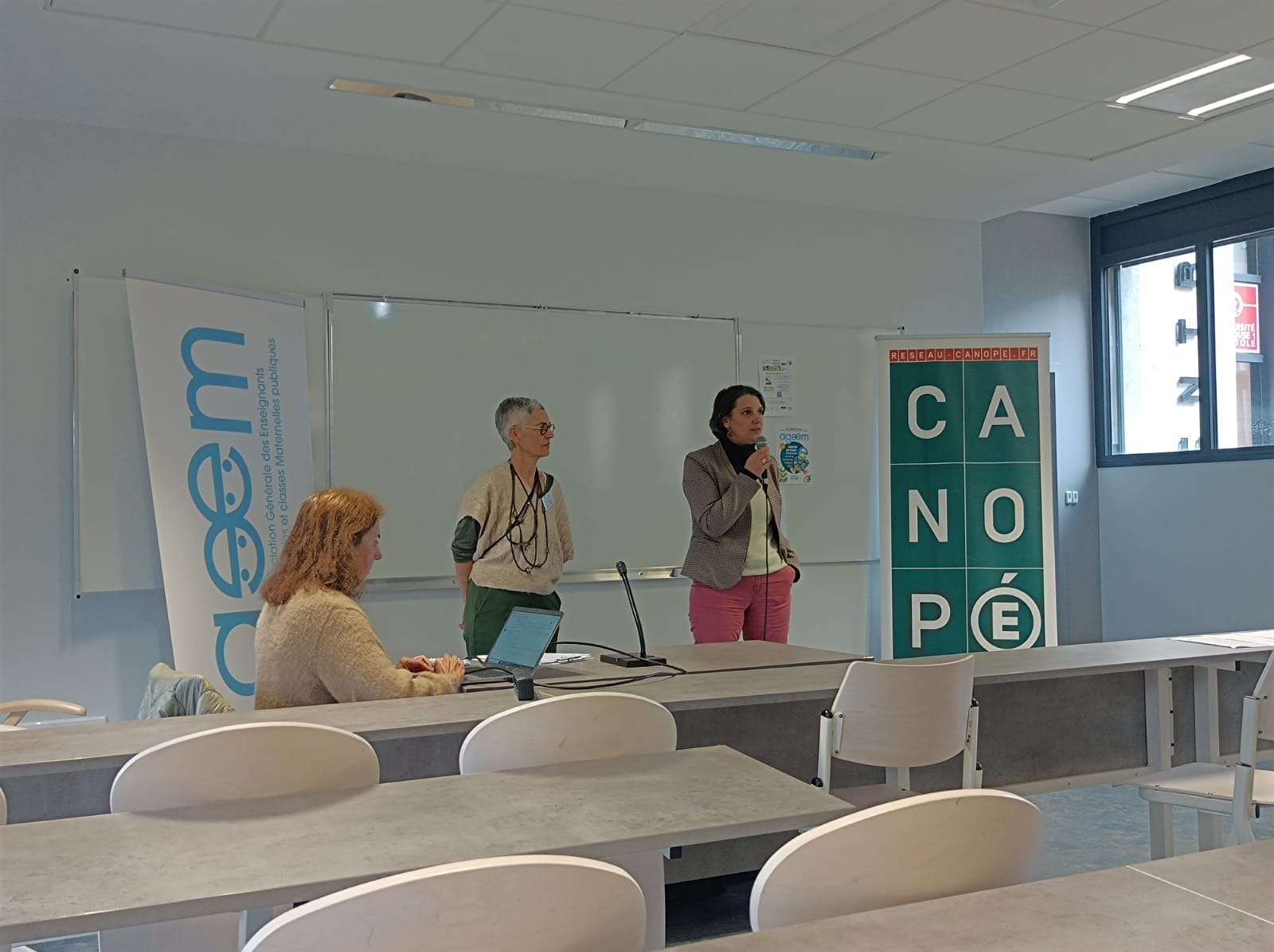 Action pour les enseignants: Une formation sur "la classe dehors en maternelle" animée par la Vice Présidente de l'AGEEM, Céline Larpin a été proposée aux enseignants en partenariat DSDEN/CANOPE/AGEEM le 20 nov. En amont ils ont pu profiter du salon des éditeurs et des partenaires. https://www.ac