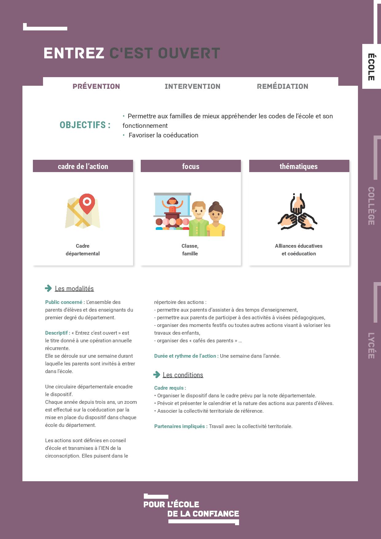 Objectifs : permettre aux familles de mieux appréhender les codes de l’école et son fonctionnement, favoriser la coéducation.